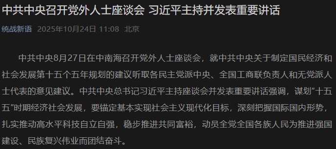 中共中央召开党外人士座谈会 习近平主持并发表重要讲话